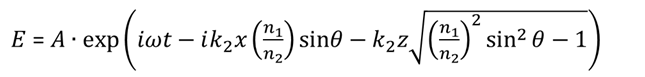 エバネッセント光の電場振幅Eは、Maxwellの方程式を起点にして界面における電磁場の境界条件を考慮することにより導出が可能であり、