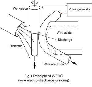 加工原理は放電加工そのものだが加工形態や加工できる形状が研削と似ていることからこの名称が与えられている。