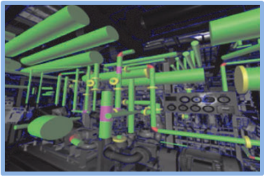 点群から設備や環境のCADモデルを生成する。プラントや土木、建築の分野においては、点群から生成されたモデルはAs-Builtモデルと呼ばれる。