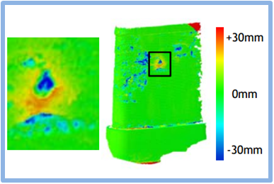 異なる時期に取得した点群間の差分を検出する。環境の変化の認識や、構造物の変形の解析および劣化診断を行う(図4)。