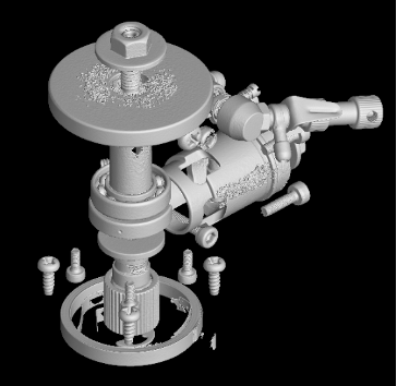 機械部品の寸法や形状は元来、ノギスやマイクロメータ、ハイトゲージやダイヤルゲージなどのスモールツールや、投影機を使用して測定されてきた。座標測定機(Coordinate Measuring Machine, CMM)が普及した二十世紀後半以降では、注目している領域(Region of Interest, ROI)の部品表面(機械部品の場合は、一般に mechanical surface [1] である)の三次元座標値を取得し、数値計算によって寸法・形状を計測することが増えている。X 線 CT でも断層撮影によって得られた ROI の三次元データ(図1)に対して適当な閾値を設定するなどの方法により、部品表面に相当する境界面(図2)をポリゴンメッシュとして出力することで得られる三次元座標値(点群データ)から、同様の計算により部品の寸法・形状計測が行える(図3)。
